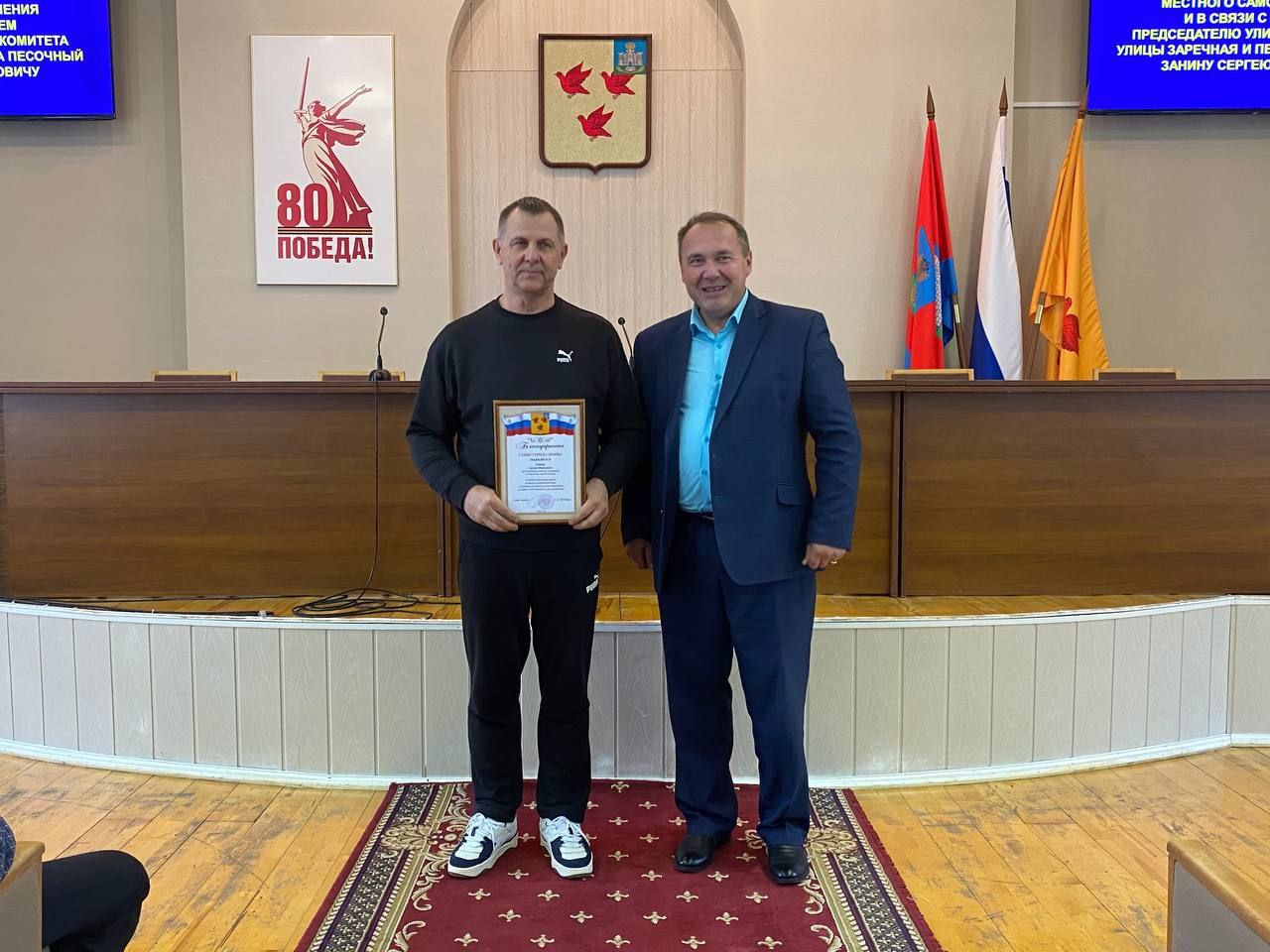 Началась встреча с вручения Благодарности главы города за добросовестный труд, активное взаимодействие с органами власти и в связи с юбилеем председателю уличного комитета улицы Заречная и переулка Песочный Сергею Ивановичу Занину.