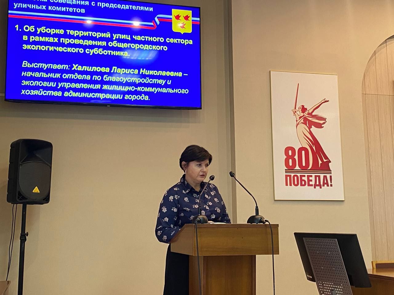 Традиционно, главной темой осенней встречи стало проведение общегородского экологического субботника. Об уборке территорий улиц частного сектора доложила начальник отдела благоустройства и экологии управления ЖКХ Лариса Халилова. Лариса Николаевна напомнила правила складирования мусора.