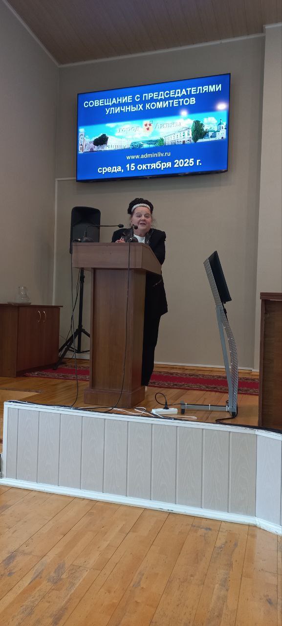 Главный специалист-эксперт клиентской службы в Ливенском районе отделения Социального фонда России по Орловской области рассказала о работе Центра общения старшего поколения. О деятельности городского общества инвалидов поведала председатель общественной организации Людмила Савенкова. Докладчицы призвали председателей уличных комитетов донести до жителей улиц частного сектора о возможности посещения организаций для активного проведения досуга.