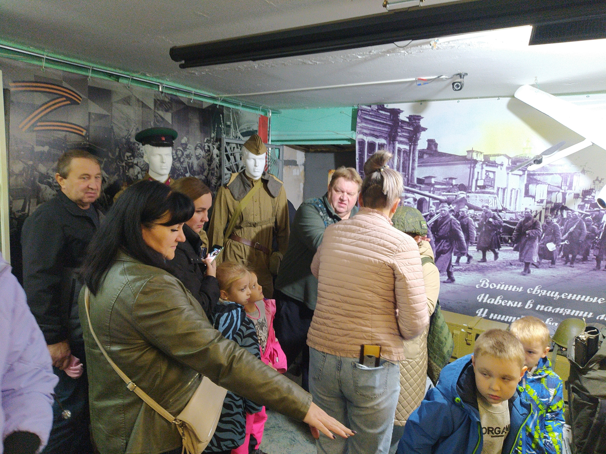 16, 17 и 18 октября музеи распахнули свои двери для детей, их родителей, бабушек и дедушек. Экскурсии по экспозициям военной тематики провели Максим Кульбачный, Алексей Сидоров, Вячеслав Леонов и Павел Аверкиев. Были представлены макеты оружия периода Великой Отечественной войны, награды, фронтовые письма и личные вещи красноармейцев.