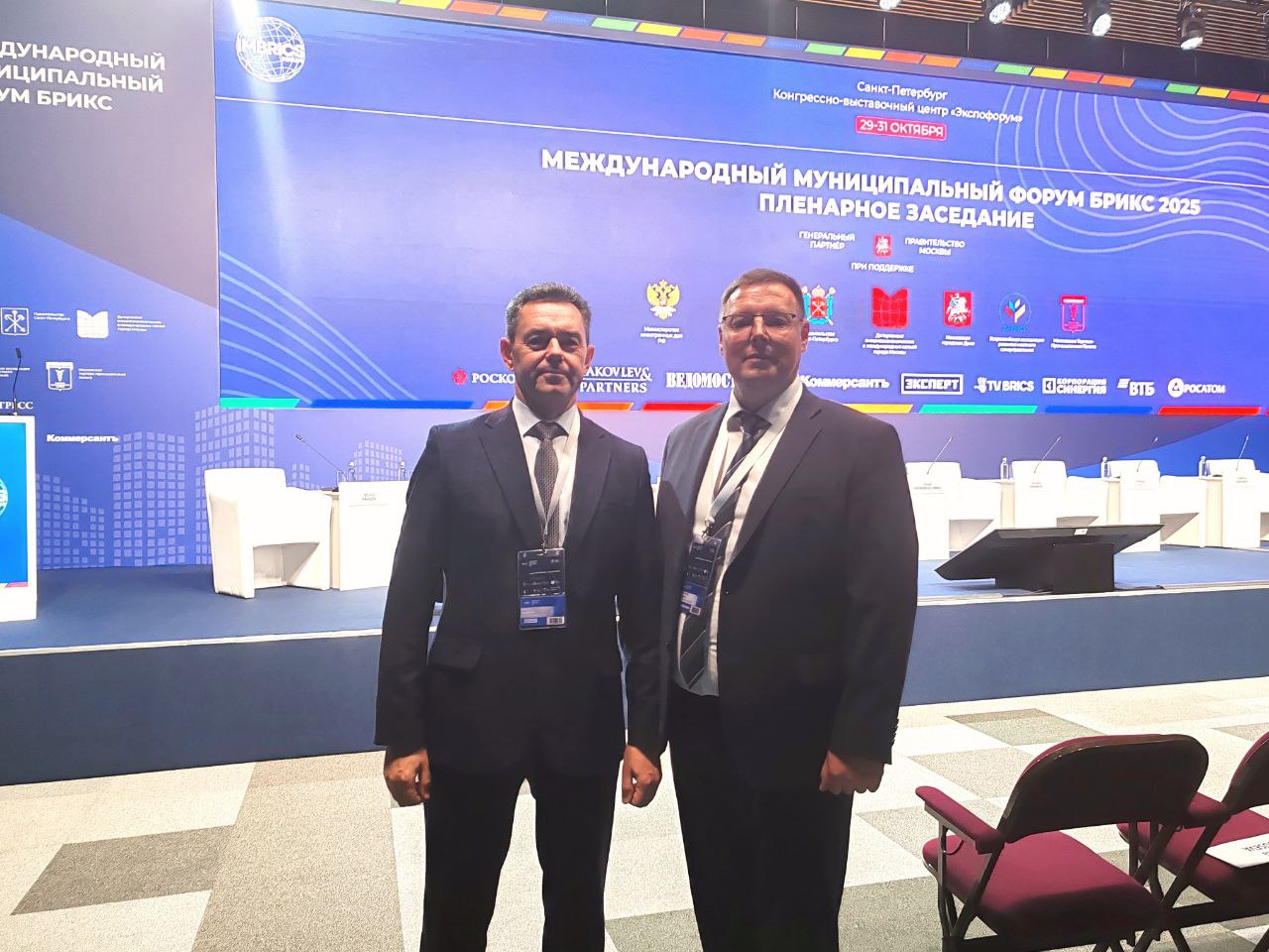 Сергей Трубицин вместе с главой Орловского муниципального округа Александром Черных , представляли на Международном муниципальном форуме БРИКС – 2025 Орловскую область.