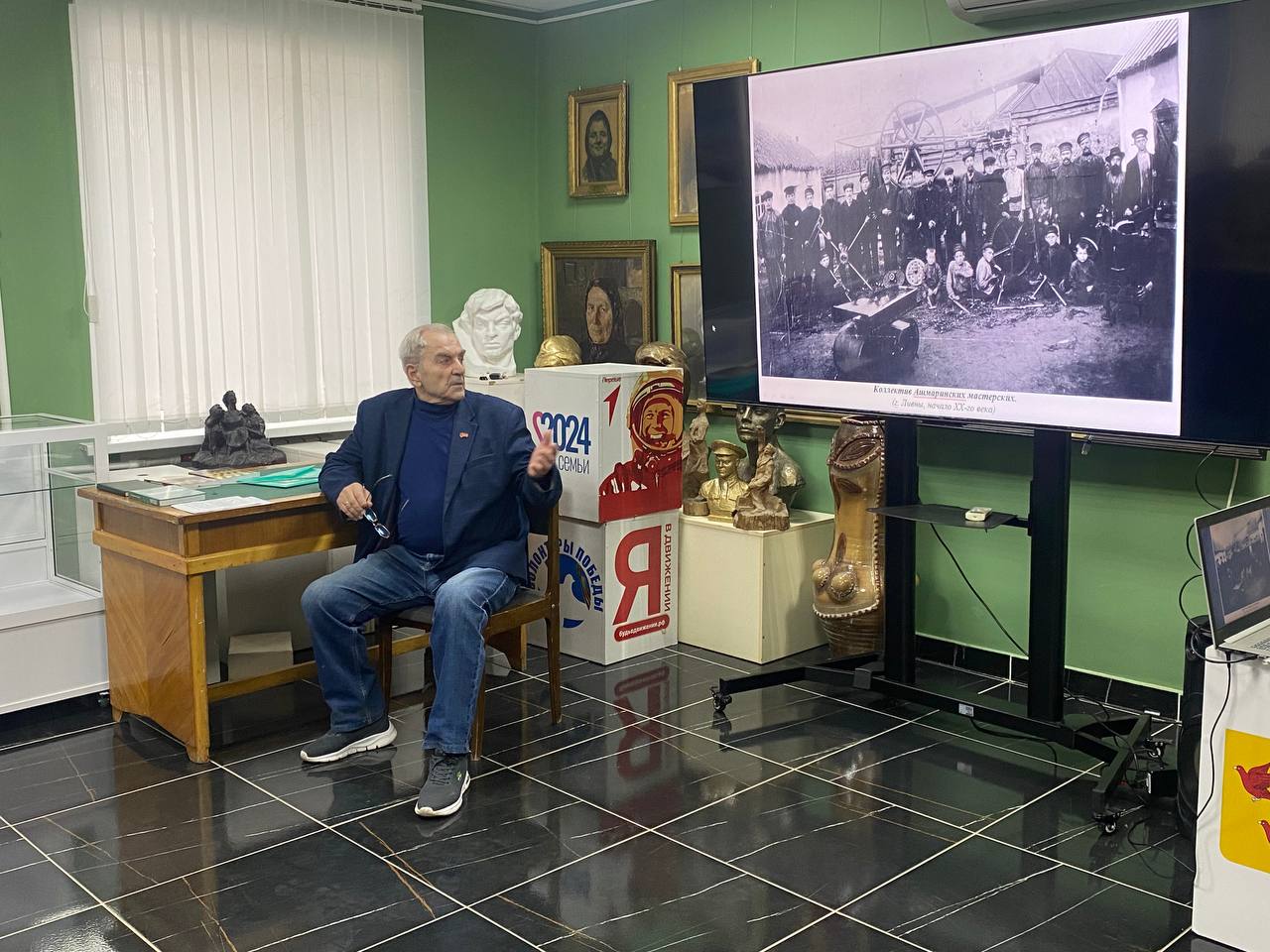 Тематическую лекцию для гостей музея провел краевед Юрий Бондарев. Юрий Иванович поведал о страницах послевоенной истории Ливен, остановив особое внимание на ключевых вехах промышленного развития города.