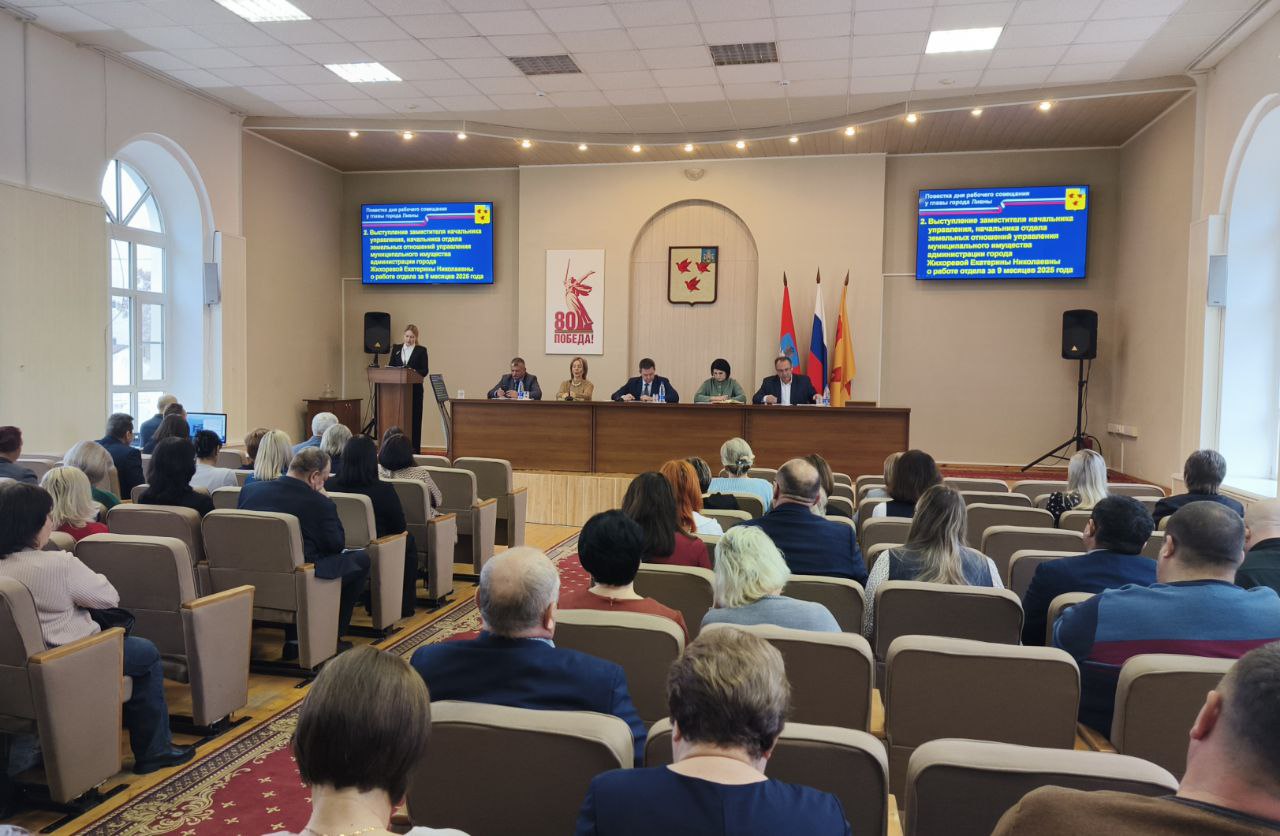 Выступление заместителя начальника управления, начальника отдела земельных отношений управления муниципального имущества администрации города Екатерины Жихоревой было посвящено работе отдела за 9 месяцев 2025 года.