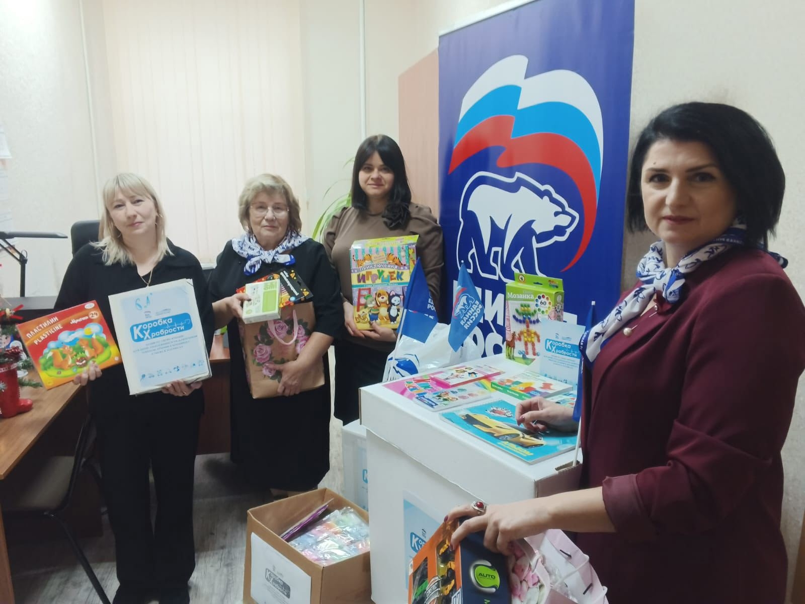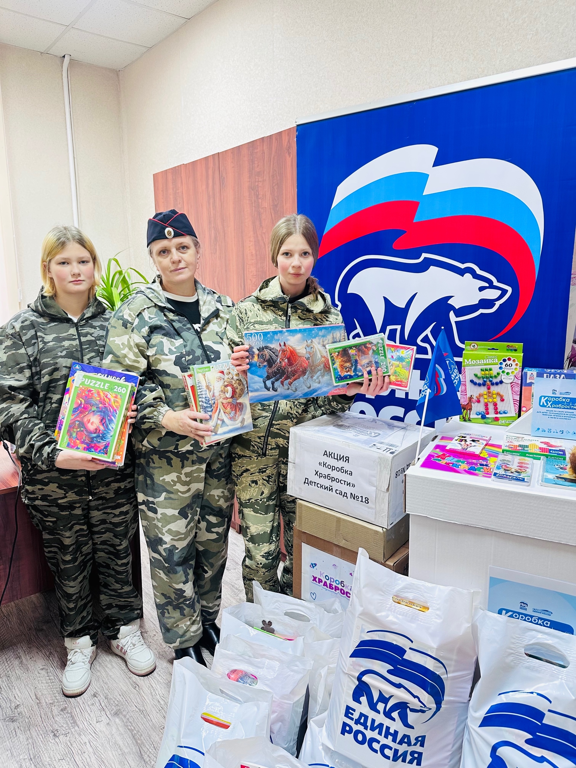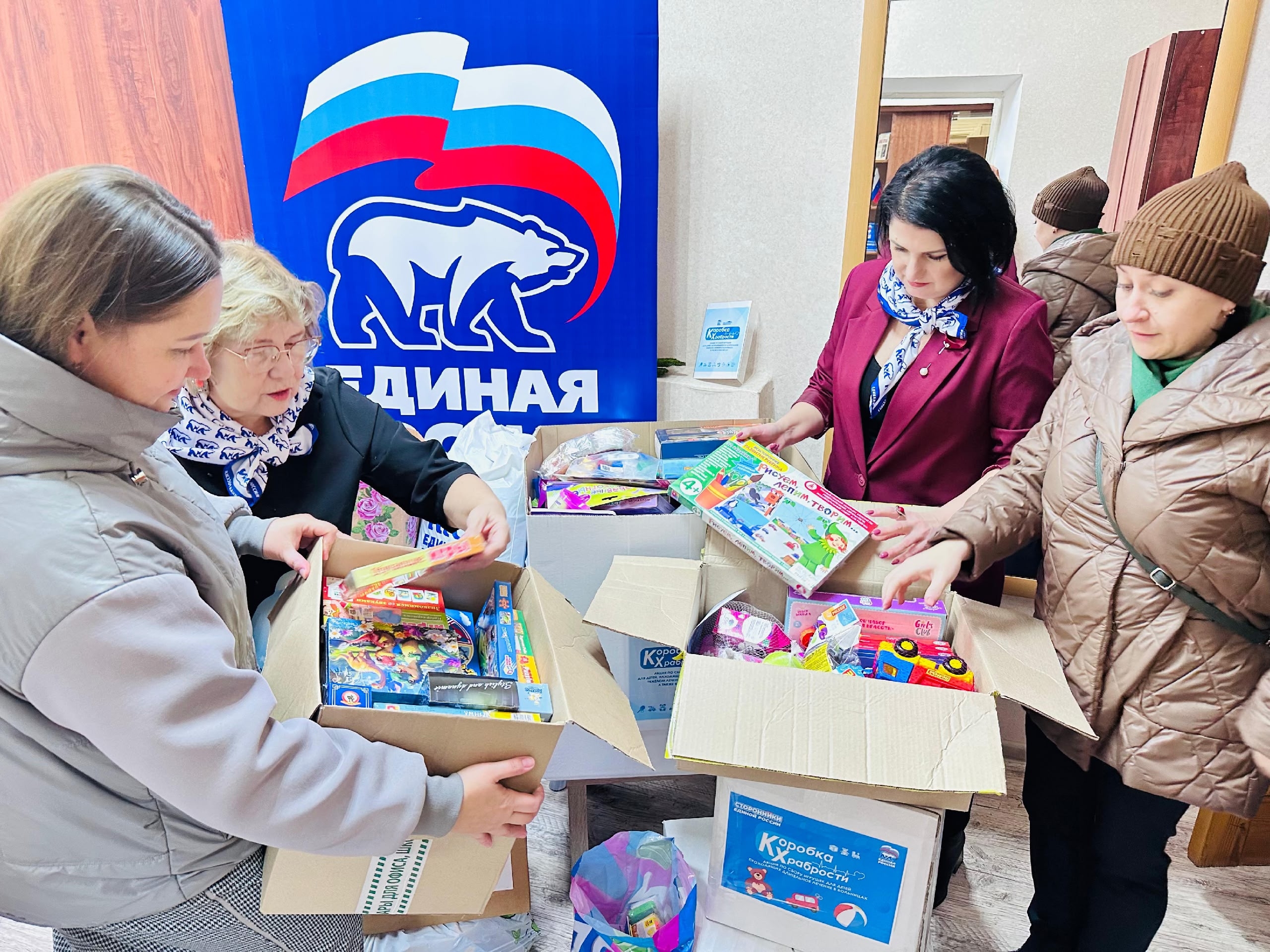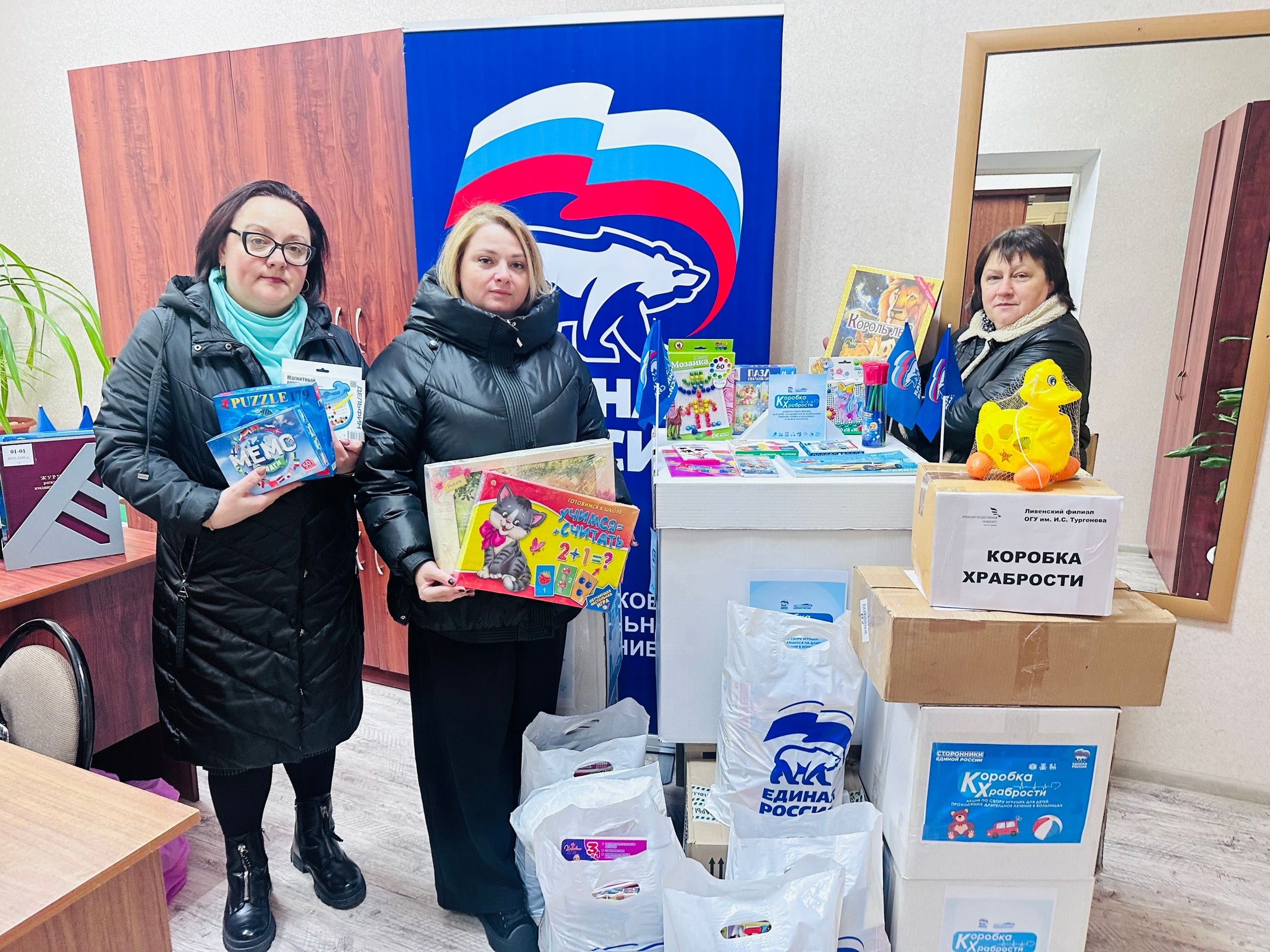 Каждый желающий мог принести новые игрушки, канцтовары, книги, раскраски, наборы для творчества и настольные игры в «Коробку храбрости», из которой после неприятных или болезненных процедур маленькие пациенты могут выбрать себе «награду».