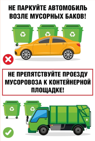 Выбирайте места для парковки, не мешающие проезду мусоровозов. Давайте вместе поддерживать чистоту и порядок в нашем городе!