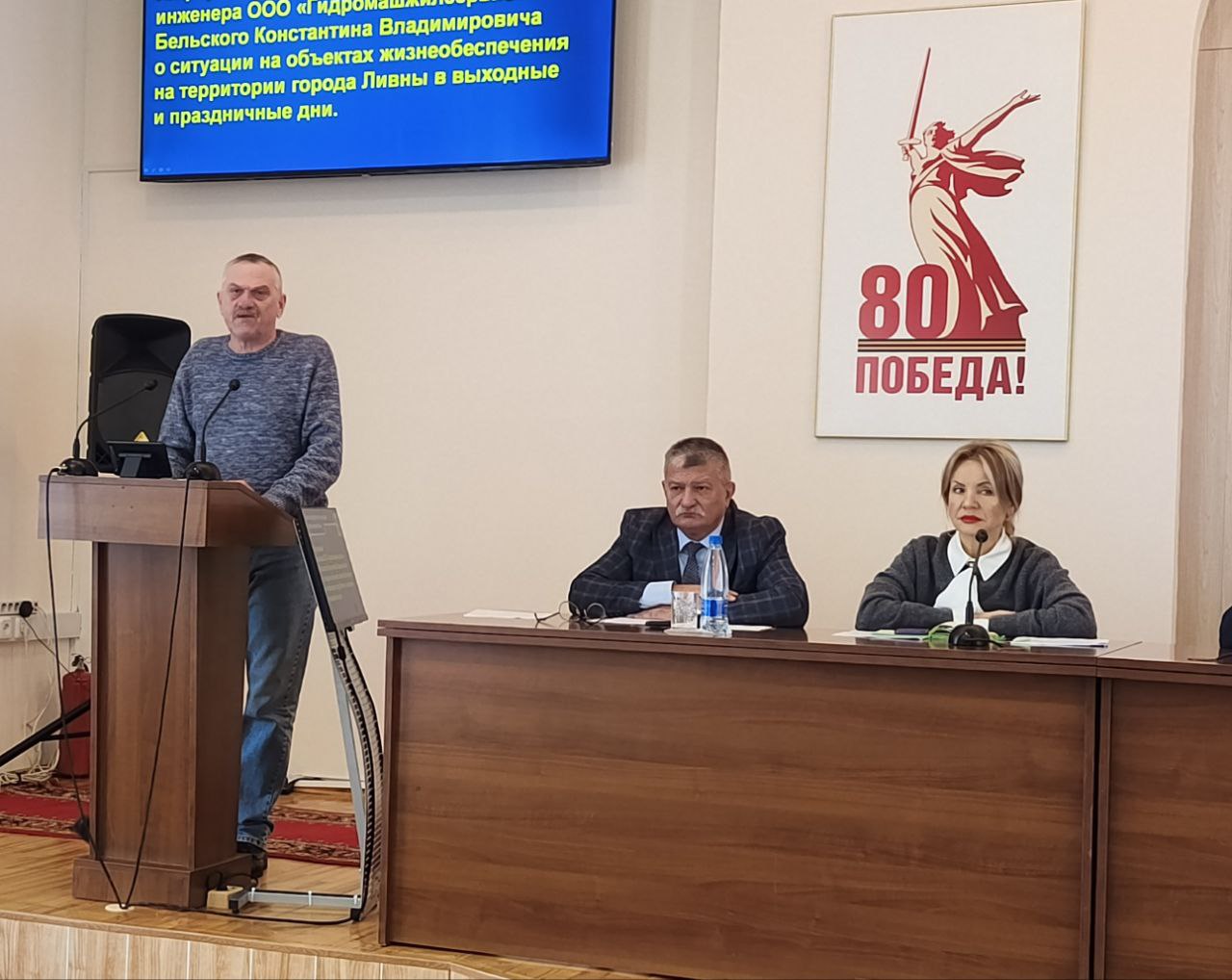 По первому вопросу начальник управления жилищно-коммунального хозяйства администрации города Олег Ретинский представил информацию о ситуации на объектах жизнеобеспечения на территории города Ливны в выходные и праздничные дни.