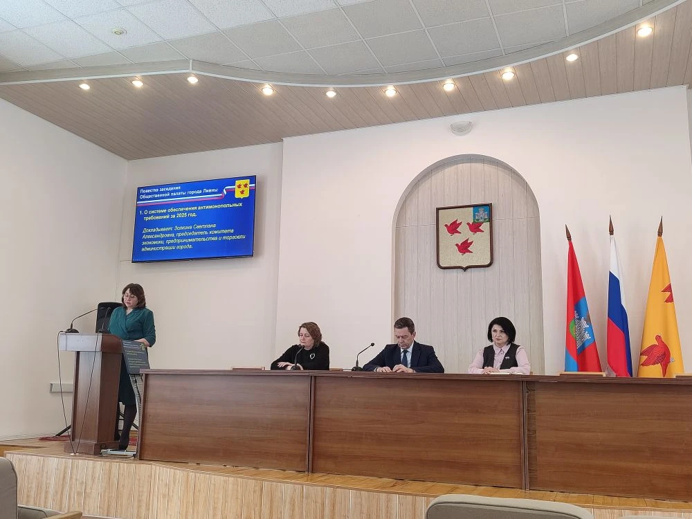 В соответствии с действующим законодательством на обсуждение совещательного органа была представлена информация о системе обеспечения антимонопольных требований за 2025 год. С докладом выступила председатель комитета экономики, предпринимательства и торговли администрации города Светлана Золкина.