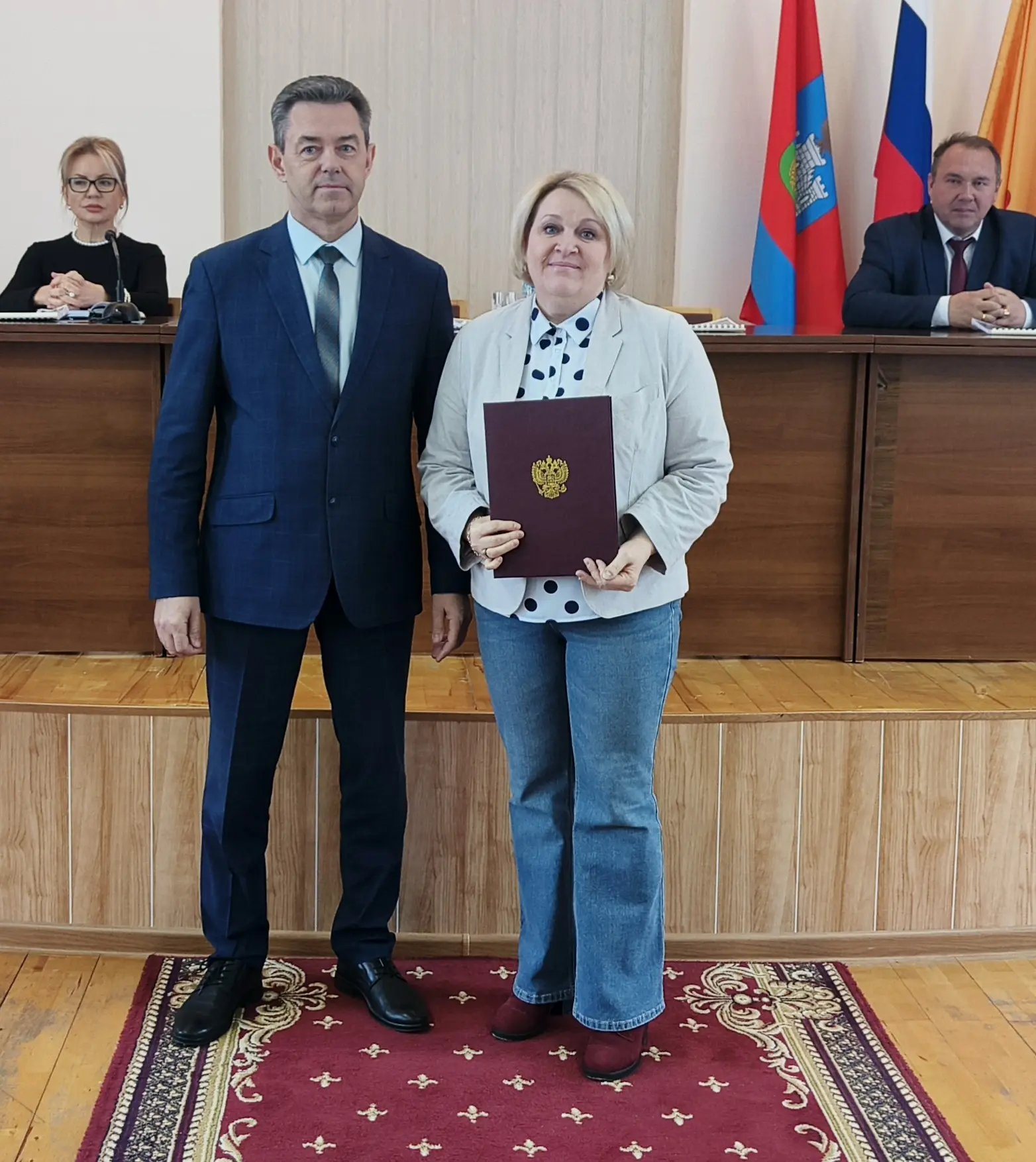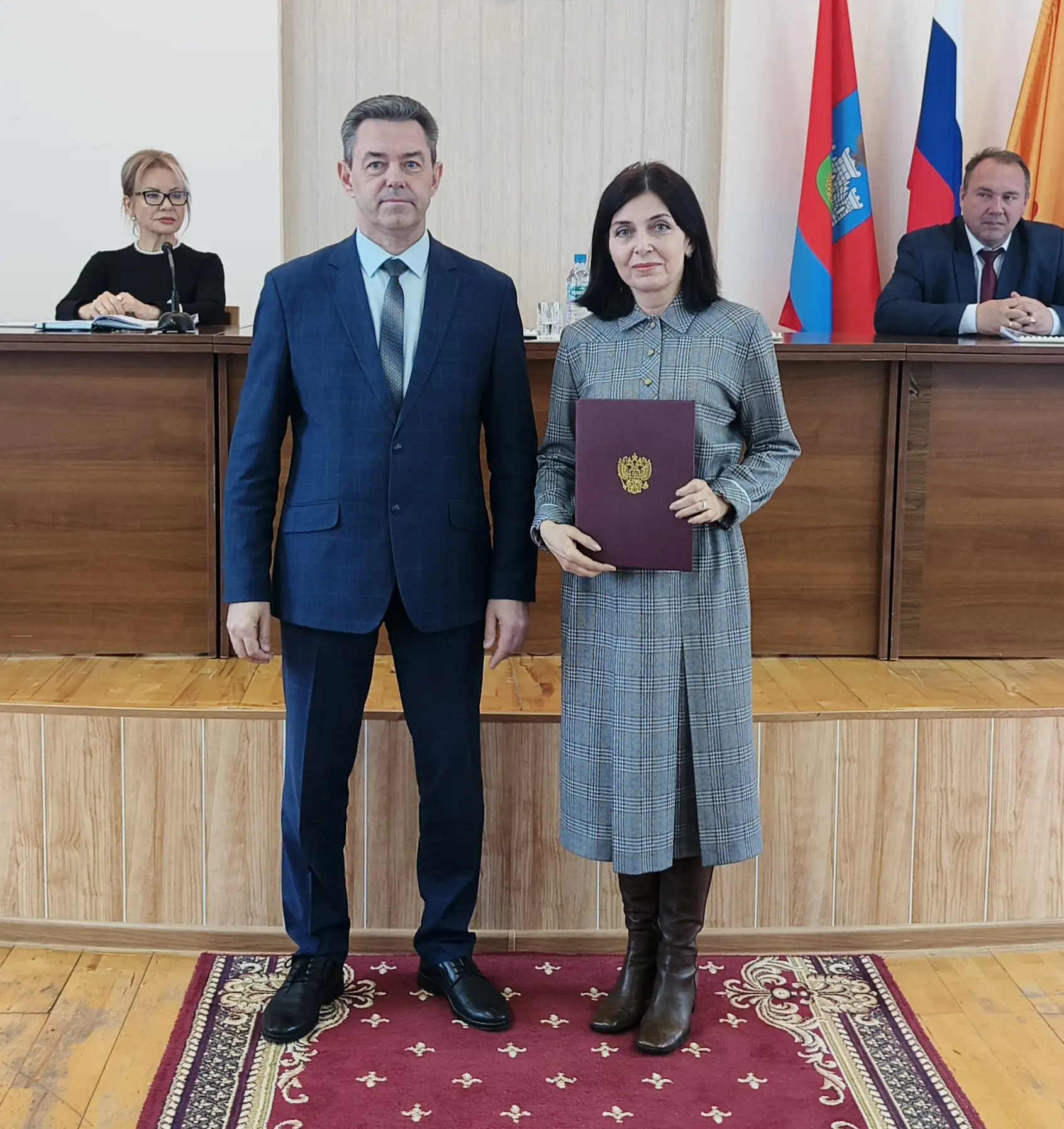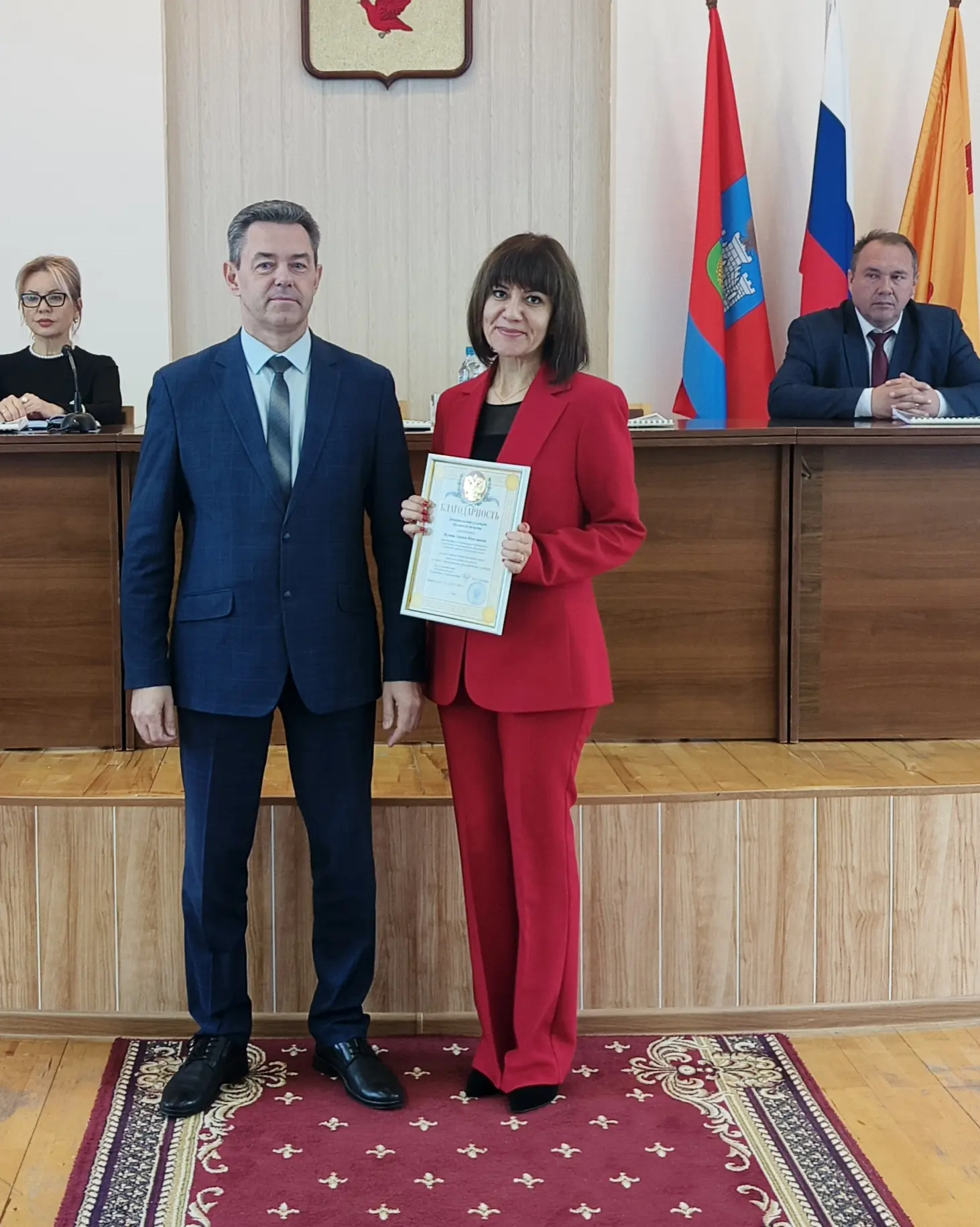 Началась встреча с награждения. За многолетний добросовестный труд, большой вклад в социально-экономическое развитие города и в связи с юбилеем Почетная грамотой главы города была вручена генеральному директору ООО «Стройинвест» Владимиру Красильникову. Несколько представителей сферы культуры Ливен были отмечены наградами за многолетний добросовестный труд, высокий профессионализм и в связи с празднованием Дня работника культуры.