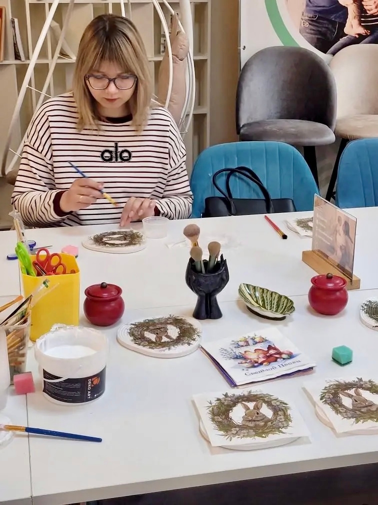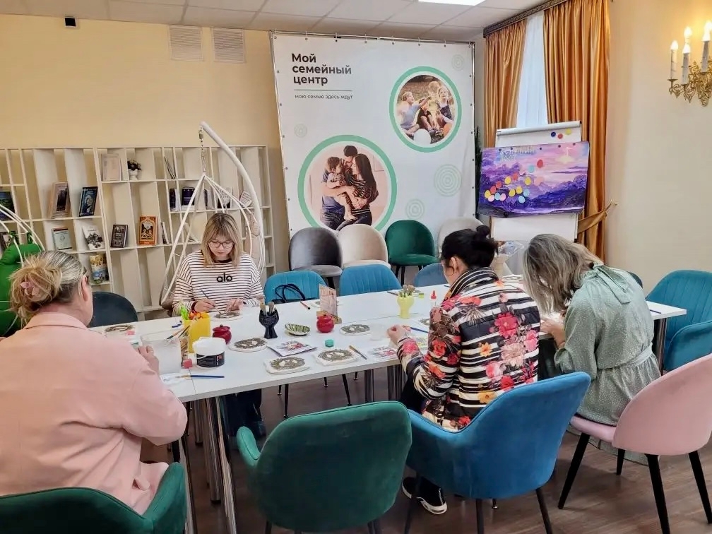 Мероприятие для беременных было проведено и в Семейном МФЦ. Там были организованы мастер-классы и чаепитие. Будущим мамам было предложено создать своими руками сувенир, украсив гипсовую тарелку.
