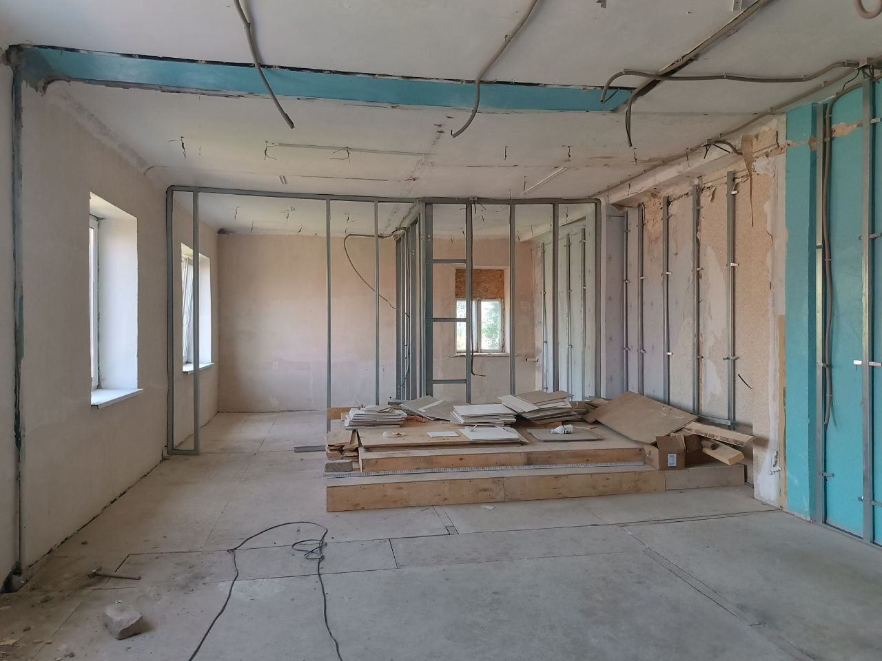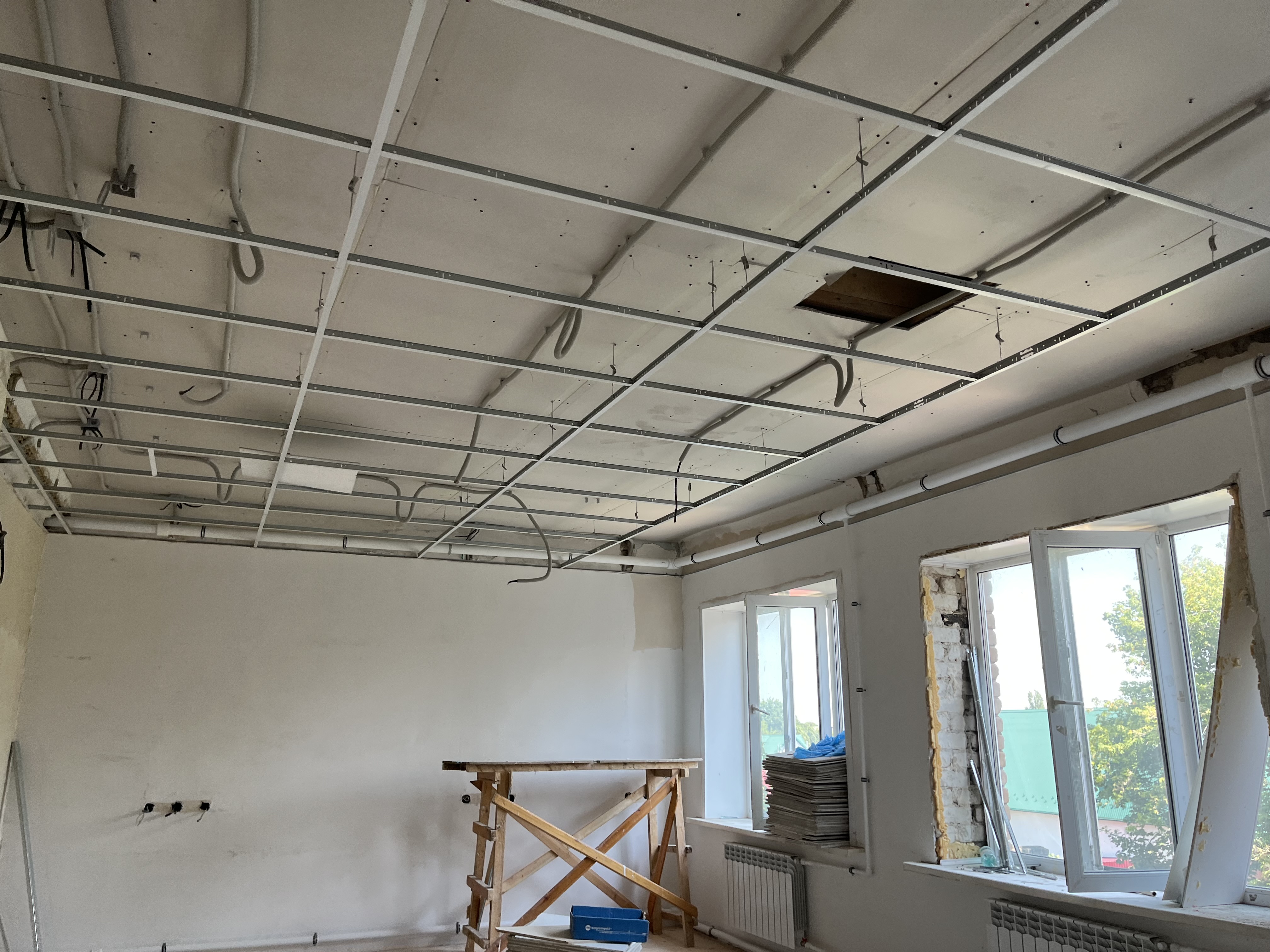 К настоящему времени в помещении по адресу ул. Карла Маркса д. 117 строители ООО «Долина» провели большую часть работ, предусмотренных проектно-сметной документацией. Впереди - покраска стен, укладка линолеума, завершение монтажа подвесных потолков.