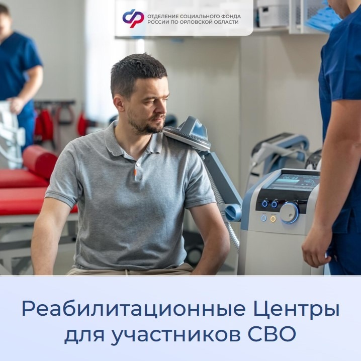 Отделение СФР по Орловской области направляет на реабилитацию участников СВО в 12 Центров: «Волга», «Волгоград», «Вольгинский», «Вятские Увалы», «Ключи», «Кристалл», "Омский», Реабилитационный и учебный Центр СФР в Подмосковье, «Тараскуль», «Тинаки», «Топаз», «Туманный».
