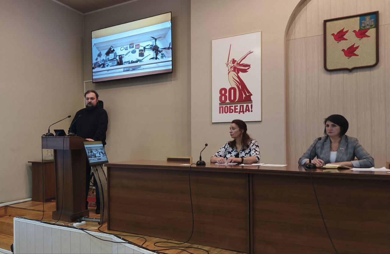Главный хранитель Ливенского краеведческого музея Максим Кульбачный сообщил собравшимся об освещении информации о специальной военной операции в стенах учреждения культуры.