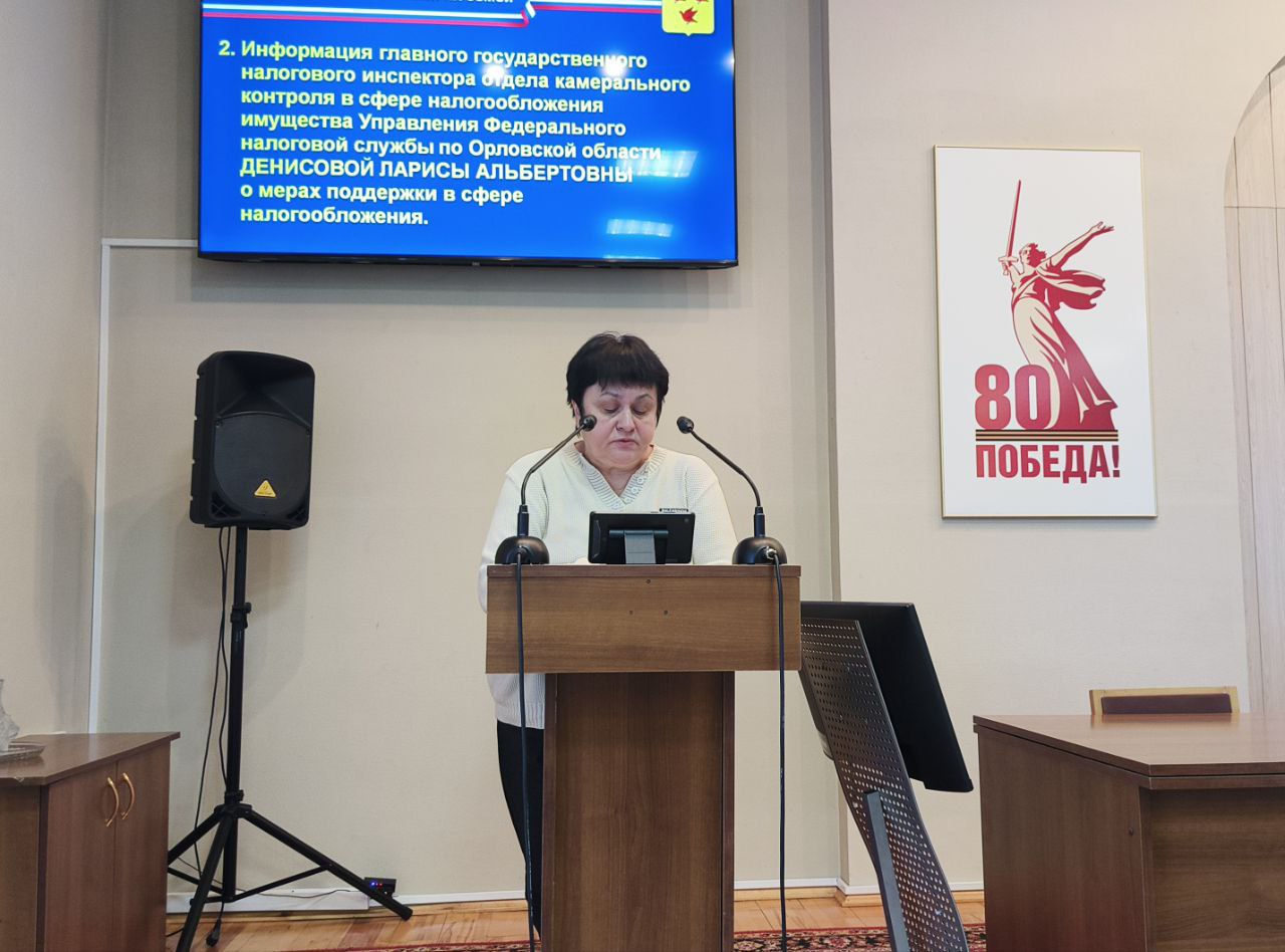 О мерах поддержки участникам СВО и их семьям в сфере налогообложения проинформировала главный государственный налоговый инспектор отдела камерального контроля в сфере налогообложения имущества Управления Федерального налоговой службы по Орловской области Лариса Денисова.