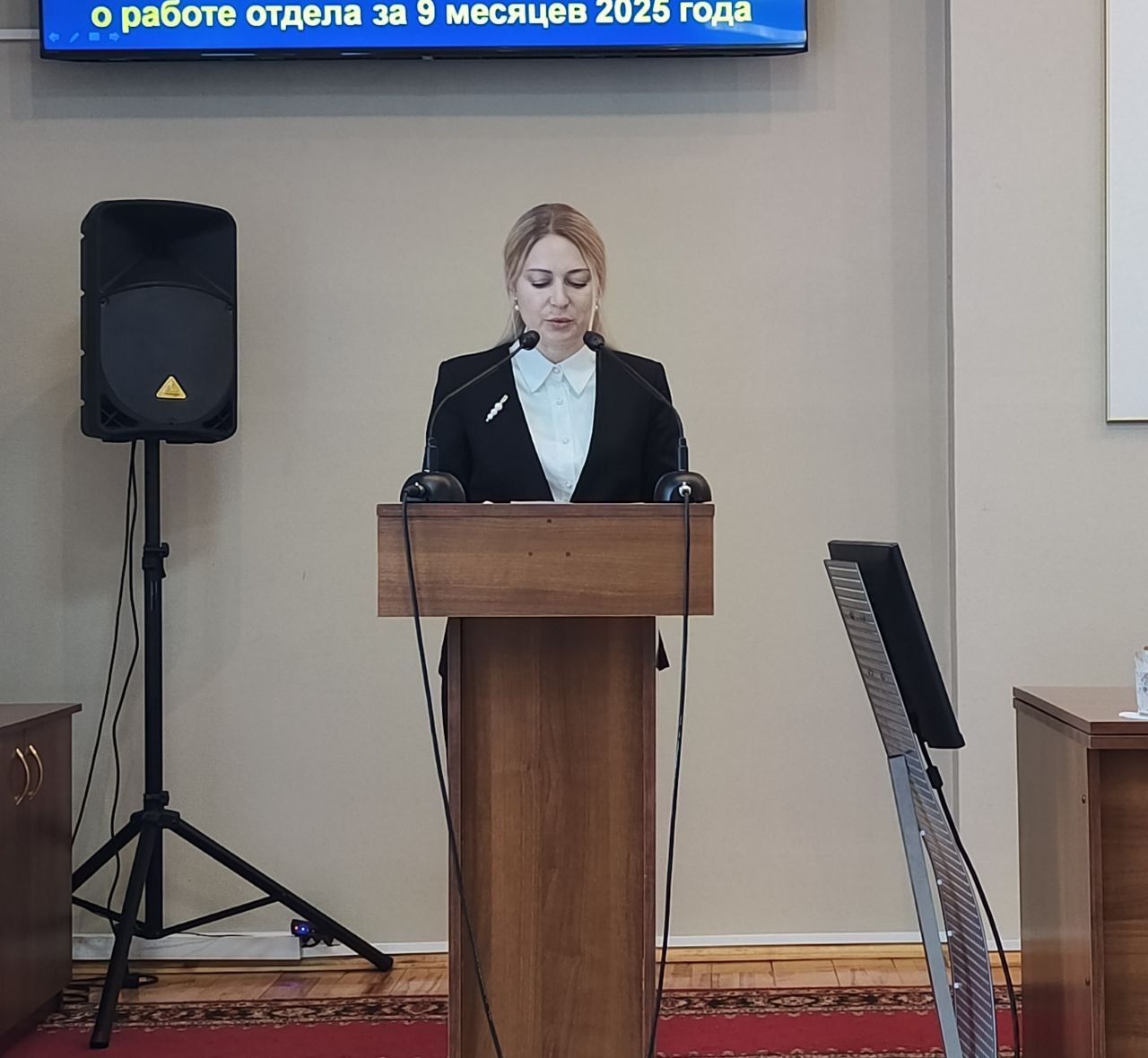 Выступление заместителя начальника управления, начальника отдела земельных отношений управления муниципального имущества администрации города Екатерины Жихоревой было посвящено работе отдела за 9 месяцев 2025 года.