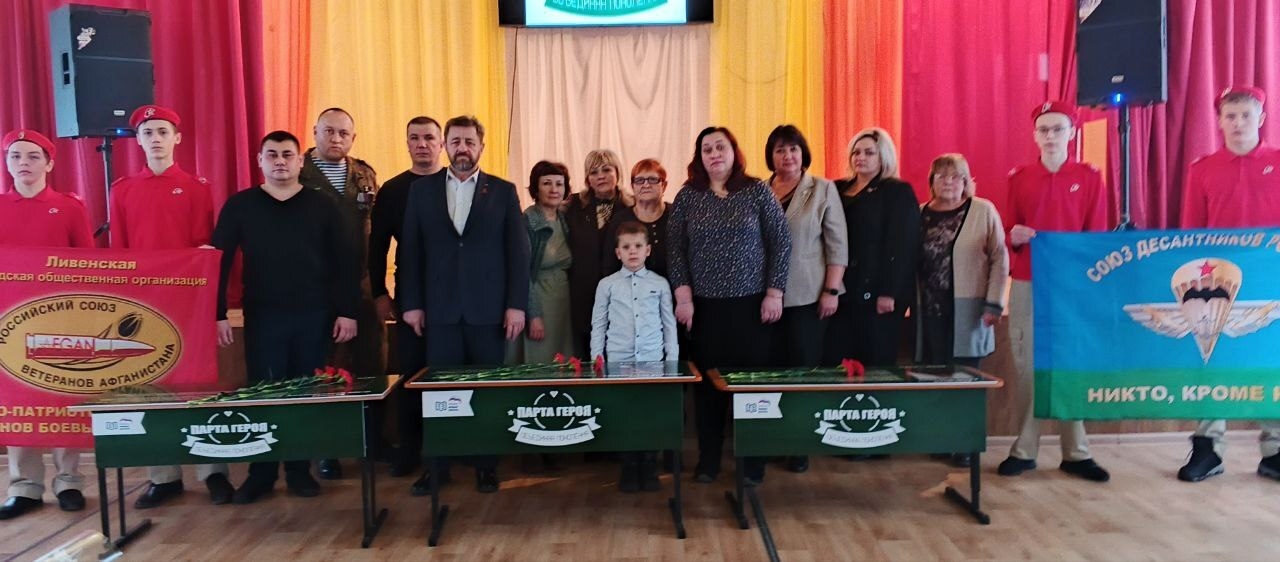 В мероприятии приняли участие мамы героев, обучающиеся и педагоги школы, начальник управления общего образования Ольга Шкодкина, депутат Орловского областного Совета народных депутатов Елена Астахова, депутат Ливенского городского Совета народных депутатов Анна Грешникова, участники боевых действий.