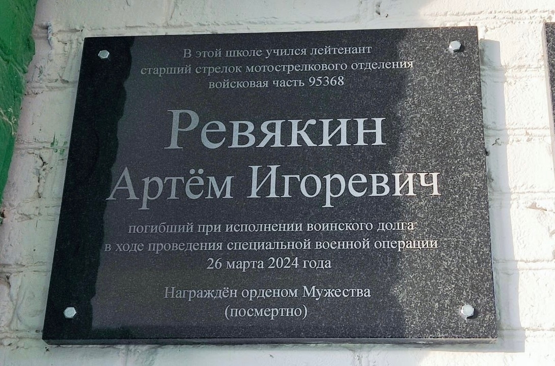 На фасаде школа № 2 разместилась памятная табличка, посвященная героическому выпускнику Артёму Игоревичу Ревякину. Лейтенант, старший стрелок мотострелкового отделения Артём Ревякин погиб при исполнении воинского долга в ходе проведения СВО 26 марта 2024 года.