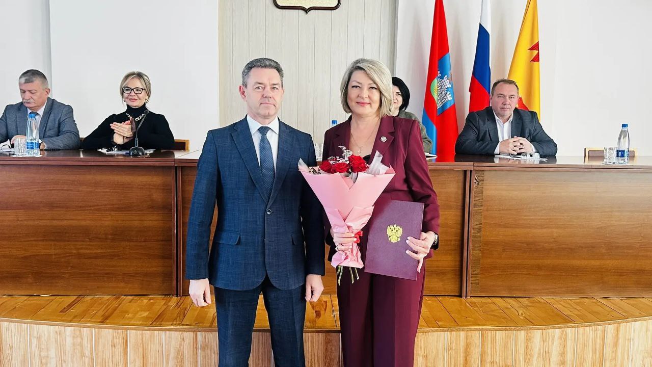 Прежде чем приступить к реализации повестки дня за многолетний добросовестный труд и в связи с юбилеем глава города Сергей Трубицин наградил Почетными грамотами главы города заведующую отделением по городу Ливны филиала по Ливенскому району и городу Ливны КУ ОО «Областной центр социальной защиты населения» Татьяну Полякову и начальника отдела планирования налогов и доходов финансового управления администрации города Людмилу Красову.