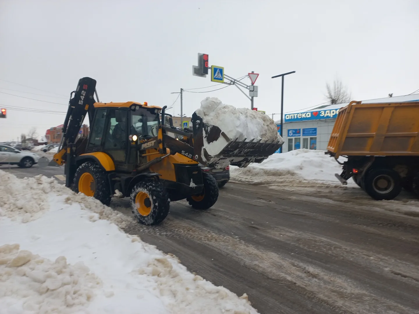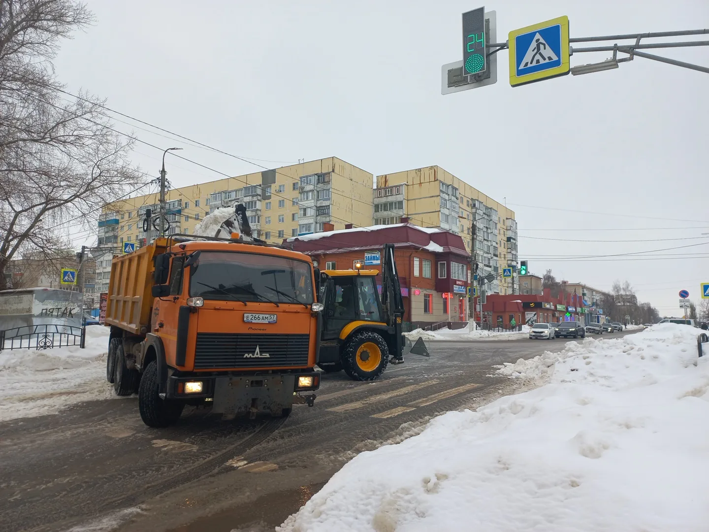 Вывоз снега с городских территорий будет продолжен согласно графику. Учитывая, что объём очень большой, к этой работе привлечены не только силы ООО КП "Ливенское", но и техника предприятий и организаций Ливен.