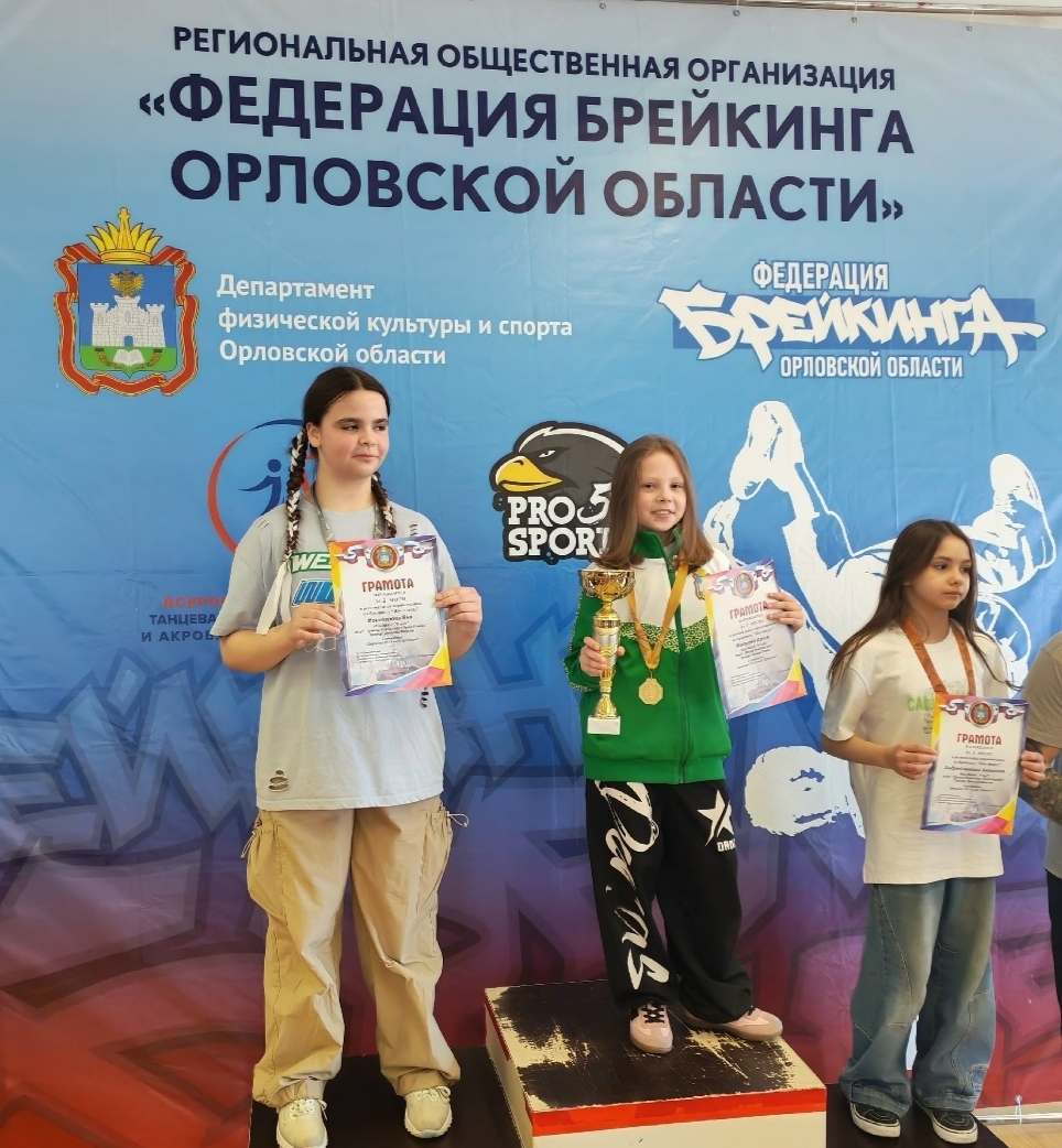 Екатерина Якшина заняла 1 место среди начинающих брейкеров и 2 место в категории девочек 7-9 лет.
