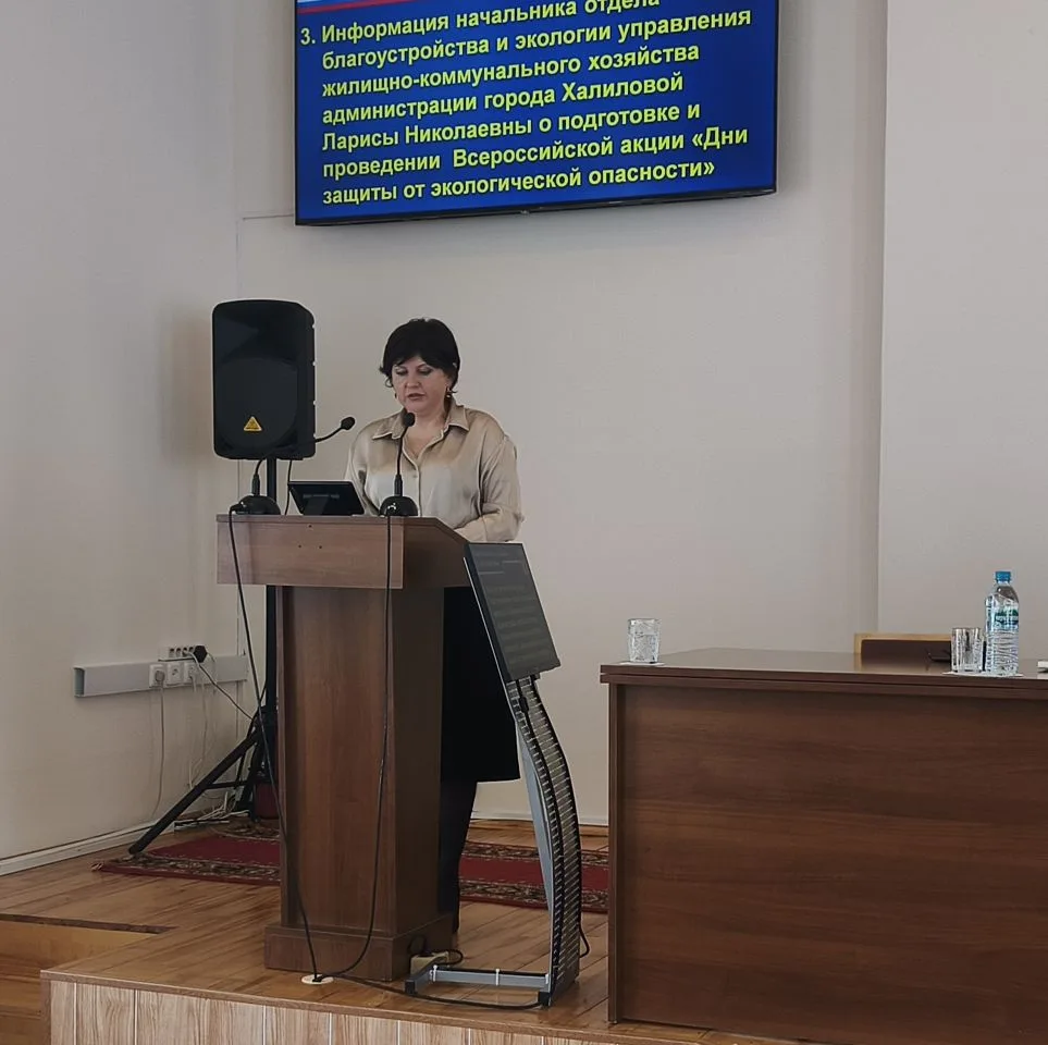 Начальник отдела благоустройства и экологии управления ЖКХ администрации города Лариса Халилова представила информацию о подготовке и проведении Всероссийской акции «Дни защиты от экологической опасности, которая проходит с 1 апреля по 1 июня 2026 года.