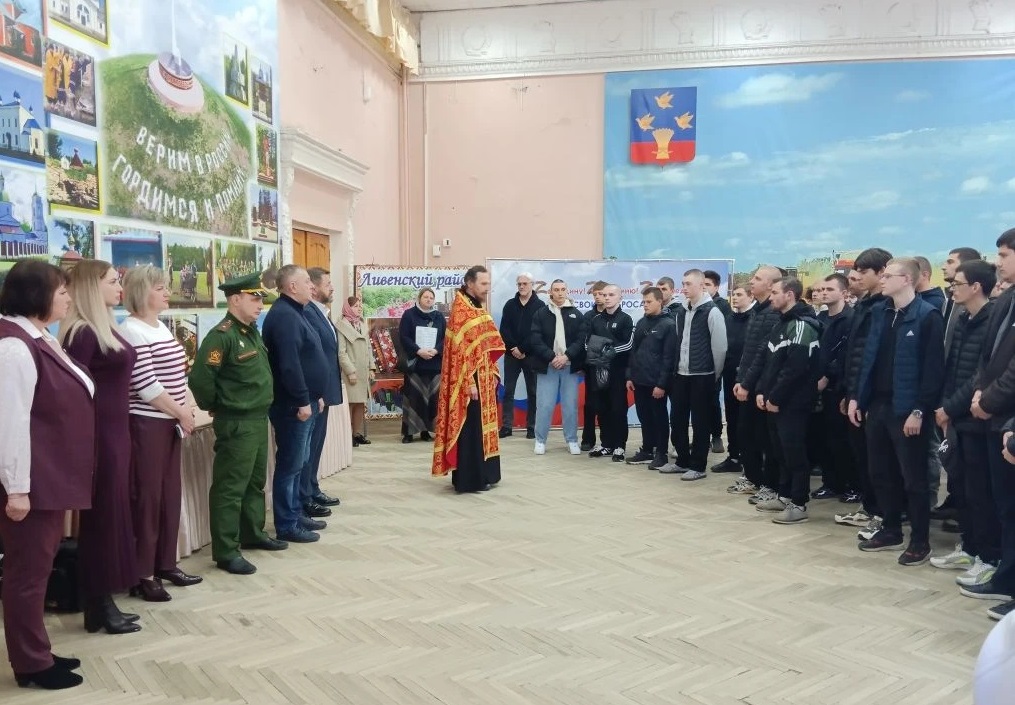 Сегодня состоялись торжественные проводы ливенских призывников в ряды Российской армии. Мероприятие прошло в Центральном районном Доме культуры. С напутственными словами к будущим солдатам обратились исполняющий обязанности заместителя главы администрации города по социальным вопросам Ольга Шкодкина, начальник управления культуры, молодежной политики и спорта Ольга Аверченко, военный комиссар города Ливны и Ливенского района Сергей Петрыкин и председатель Ливенской городской общественной организации «Военно-патриотический клуб воинов-интернационалистов» Сергей Шеламов. Выступающие желали ребятам легкой службы, верных друзей и скорейшего возвращения домой. На добросовестную службу призывников благословил председатель отдела по работе с Вооруженными Силами, МВД РФ и МЧС РФ Ливенской епархии иерей Иоанн Кузьмин.