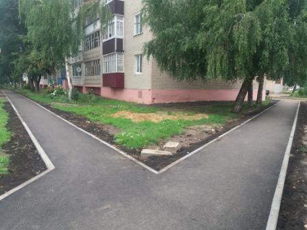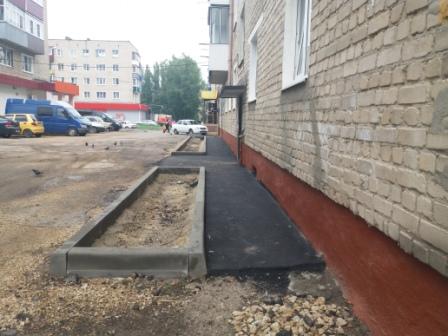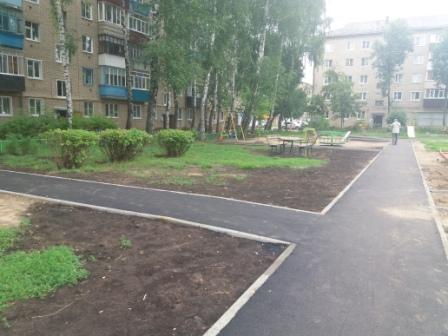 На сегодняшний день на обеих площадках выполнены работы по установке бортовых камней, поребриков, спиливанию деревьев, устройству дополнительных парковочных мест, планировка пешеходных дорожек, исправление профиля щебнем, устройство асфальтобетонного покрытия пешеходных дорожек (по ул. Мира д.144, 146,д.150 выполнены работы по устройству асфальтобетонного покрытия тротуаров и подходов к подъезду). Кроме этого, подрядчиками заключены договора на поставку малых архитектурных форм и детского игрового оборудования. Предстоит асфальтирование проезжей части.